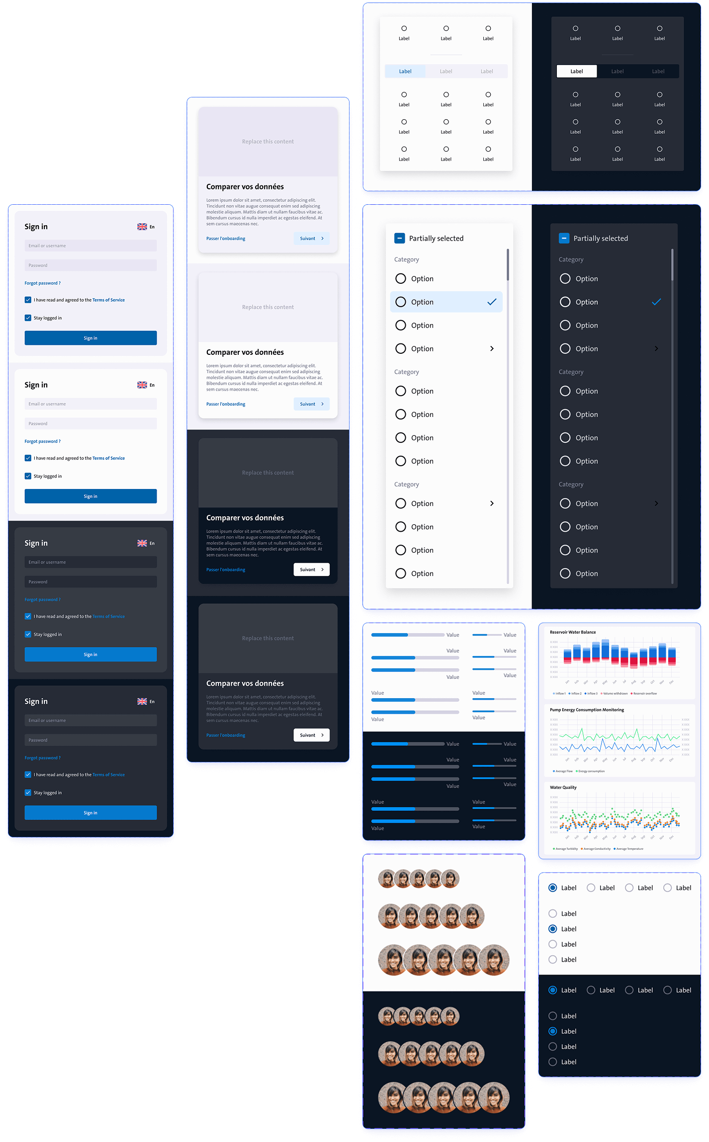 J’ai contribué à l’adaptation d’un Design System existant en collaboration avec d’autres designers. Pour ce projet, j’ai développé des composants spécifiques aux besoins des collectivités, optimisé l’ergonomie des tableaux de bord et assuré une cohérence visuelle avec les autres initiatives de Veolia.