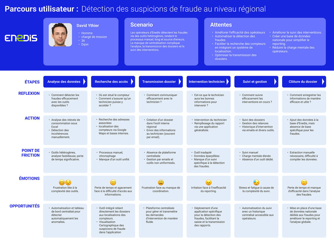 Comprendre les besoins des gestionnaires régionaux d’Enedis et définir les fonctionnalités clés pour optimiser la détection des fraudes et la gestion des interventions.